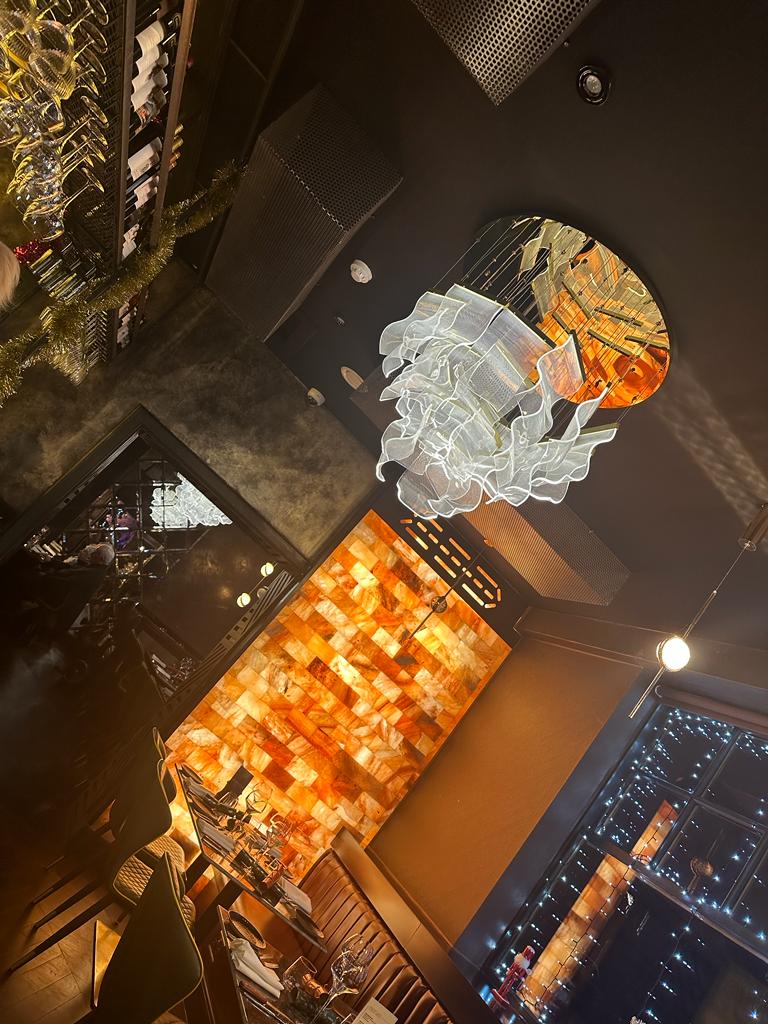 We developed industrial designs and technical drawings, meticulously sourcing materials and navigating the building warrant process. Key interior highlights include an onyx backlit veneer bar, adding a luxurious yet inviting ambience. The dining space is further accentuated by a spectacular feature wall made from Himalayan salt, sourced directly from the mountains of Pakistan, creating an enchanting visual experience. The walls boast stunning gold and black Venetian plaster, adding a touch of bespoke elegance to the space. A unique attraction of Parrila is its one-of-a-kind digital water curtain in Scotland, seamlessly blending technology with design to offer an immersive dining experience. Each element was thoughtfully chosen and crafted to ensure Parrila stands out as a pinnacle of culinary and architectural excellence.
